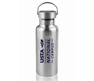 The USTA Stainless Steel Vacuum Insulated Bottle 28 oz. comes with durable, double-wall stainless steel vacuum construction with copper insulation, which allows your beverage to stay cold for 48 hours and hot for at least 12 hours. This unique construction also prevents condensation on the outside of the bottle. The bottle also features stainless steel screw-on, spill-resistant lid with durable stainless steel hand loop, wide opening for comfortable filling and pouring and fits most standard car cup, holders.